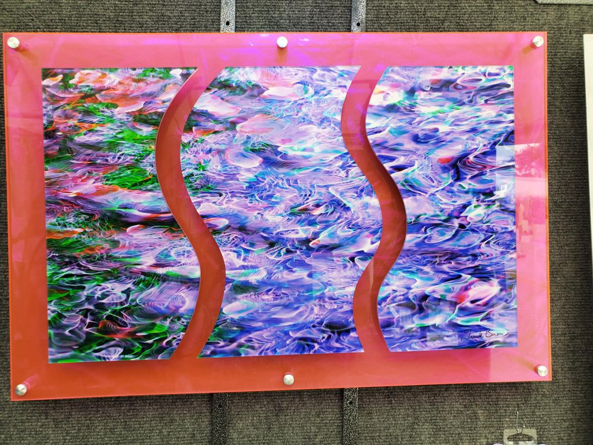 I take abstract photographs of colored lights at night. My images are printed on metal. I incorporate various treatments making my pieces unique. I incorporate