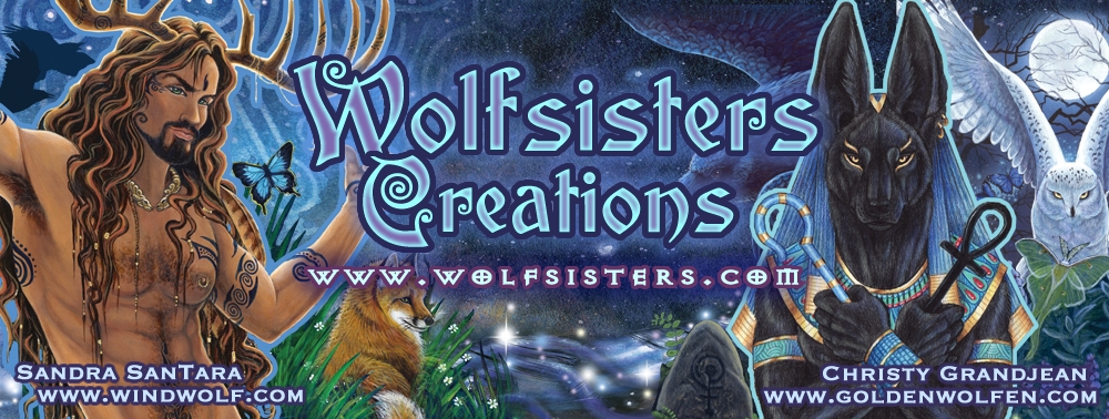 Wolfsisters Creations is a collaboration between Sandra SanTara of Windwolf Studio and Christy "Goldie" Grandjean of Goldenwolf Art.