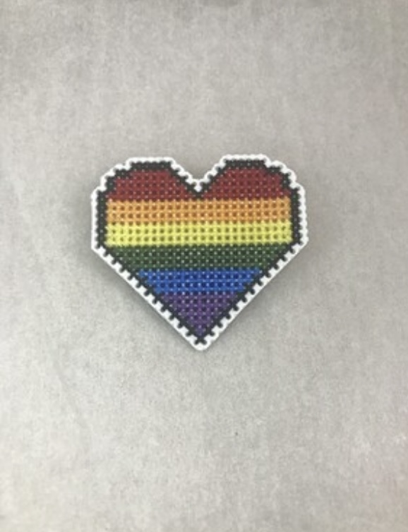 Rainbow Cross Stitch Heart Pin