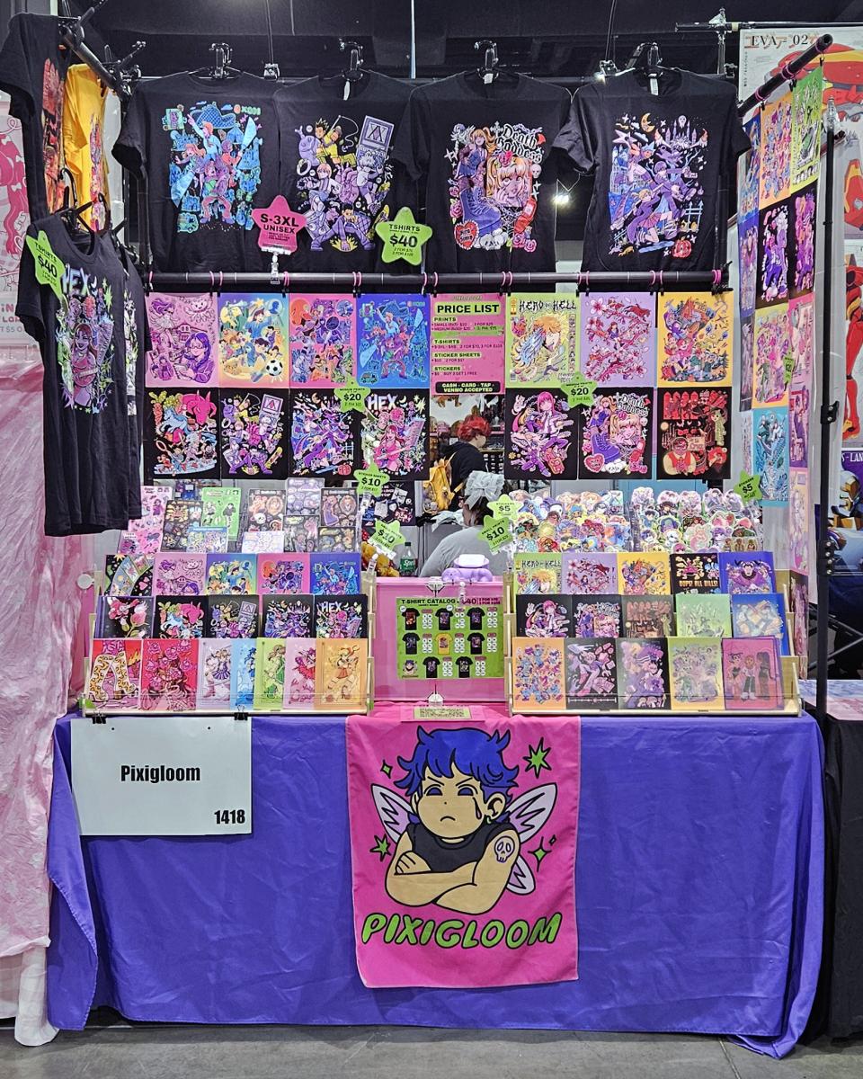 Pixigloom creates electrically colorful, spooky and maximalist illustrations inspired by 2000s anime and cartoons. His unique style brings nostalgic vibrance to t-shirts, stickers, prints, and merchandise; reminders of your favorite stories, new and old.