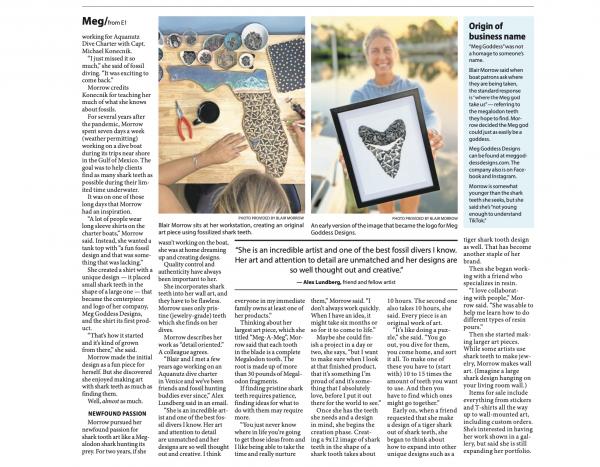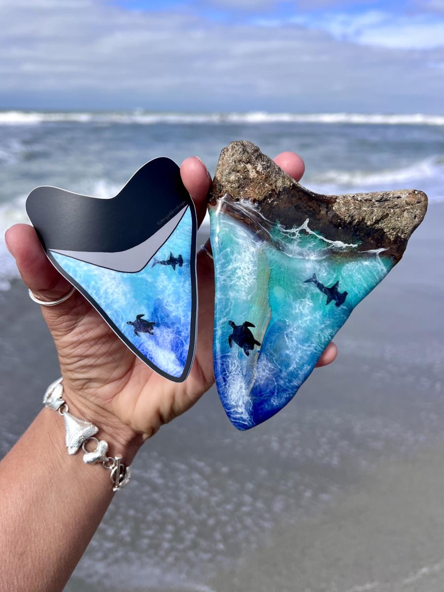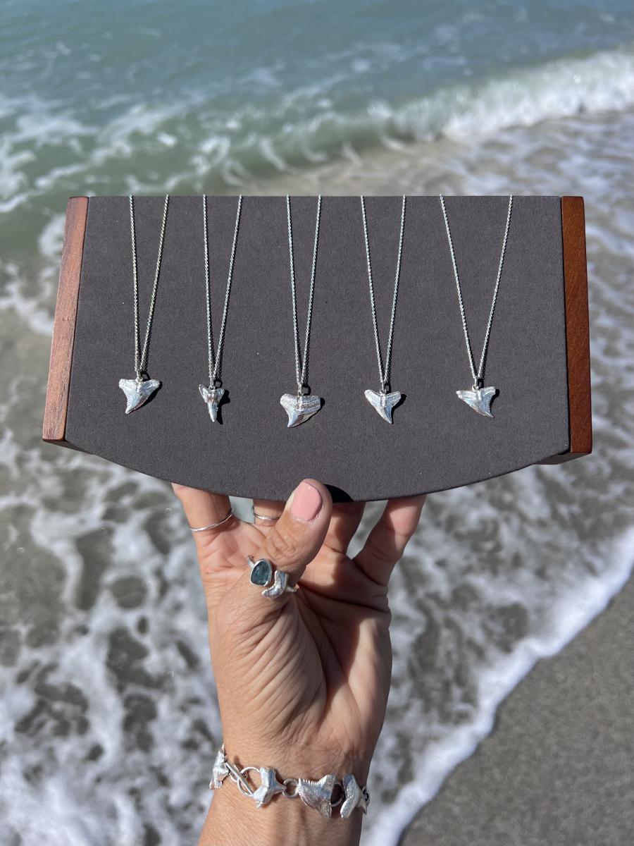 I am a scuba diver and artist from Venice, Florida who specializes in shark tooth and fossil related creations. My world pretty much revolves around the water & my artwork. I personally dive to source the materials (authentic and ethically found fossilized shark teeth) that I use in my work, create the original artwork & design specialty ocean-themed pieces relating to my finds.
