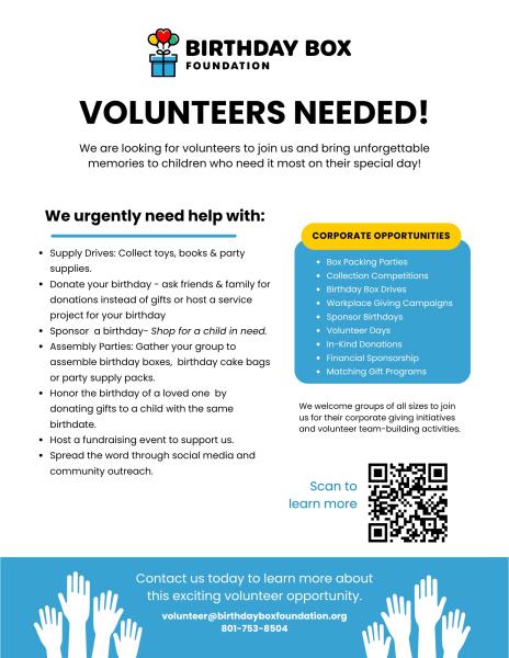 Birthday Box Foundation is a Utah-based 501(c)(3) nonprofit.