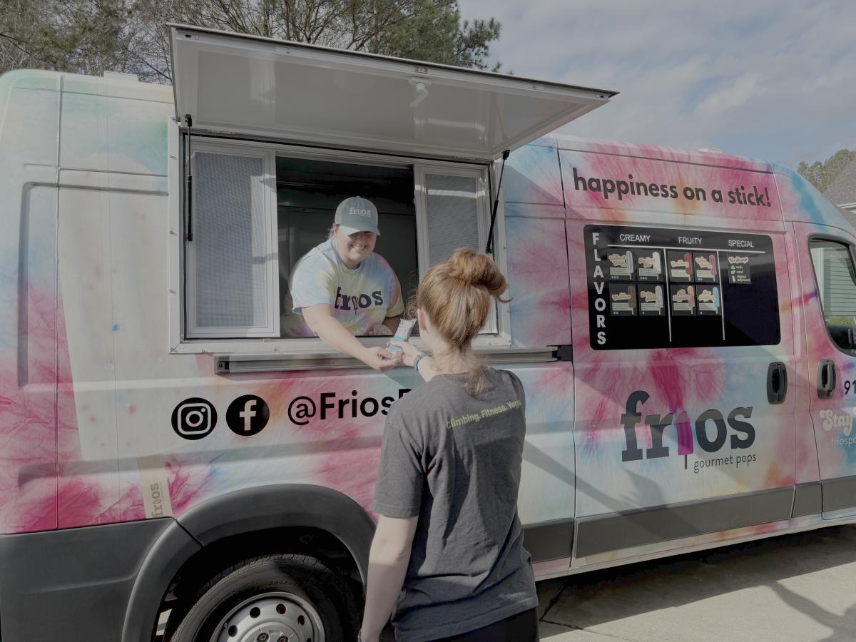 We are Frios Raleigh, selling happiness on a stick via our delicious, nutritious hand-poured popsicles. Our pops contain real ingredients with options for people with dietary restrictions such as gluten-free, vegan, dairy-free, and dye-free. We sell from our tie-dye van and bring smiles to people's faces when they taste our delicious pops. We even offer pup pops for your favorite K9 family members. We are a veteran-owned and operated business that enjoys getting out into the community and spreading happiness.