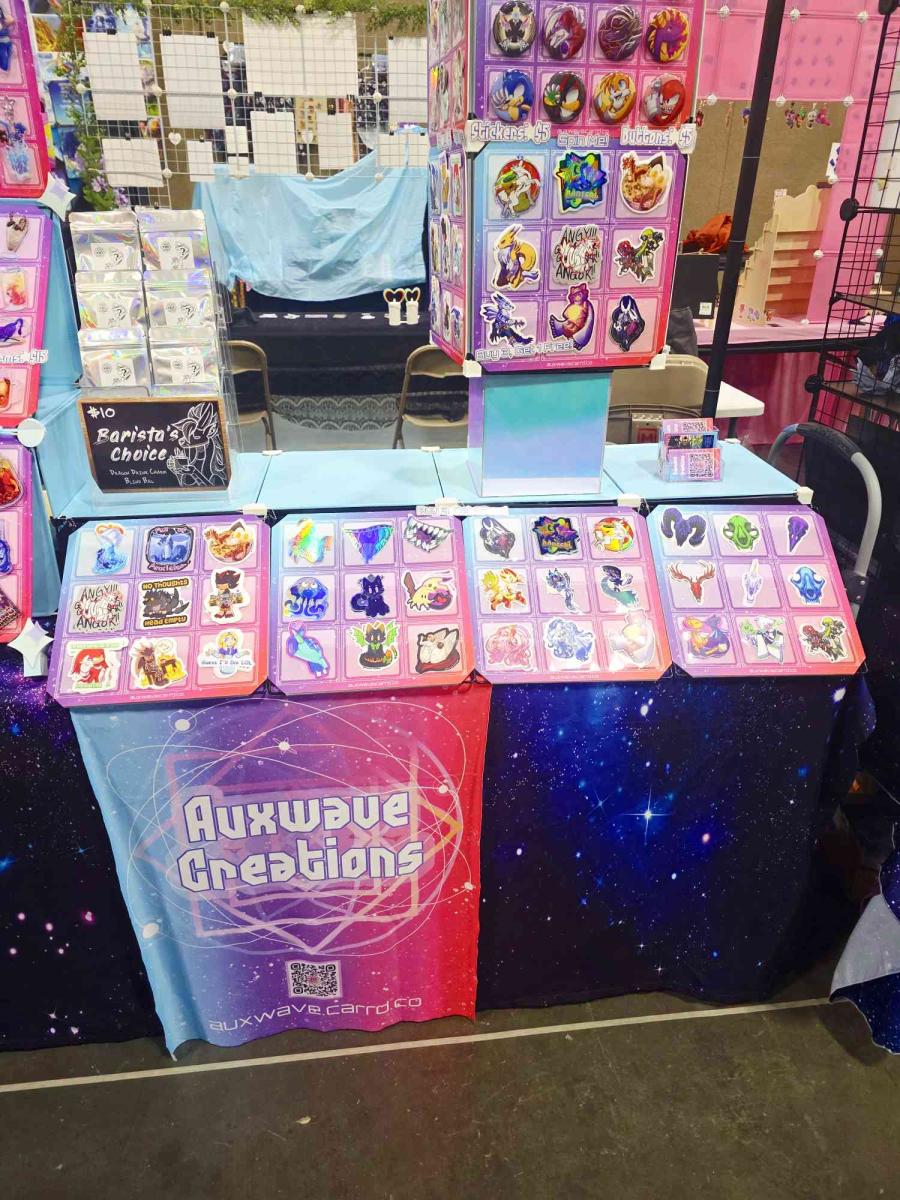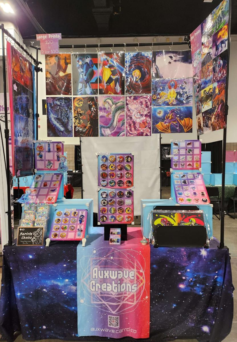 Auxwave Creations is the passion project of two married LGBTQA+ artists. We believe in making things we love, and we want to share them with you! Our works are a blend of both our styles. Our specialty is fan and original art that's weird, cute, dark, and colorful.