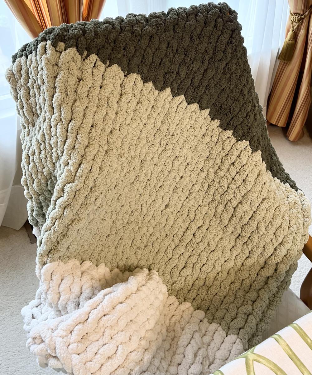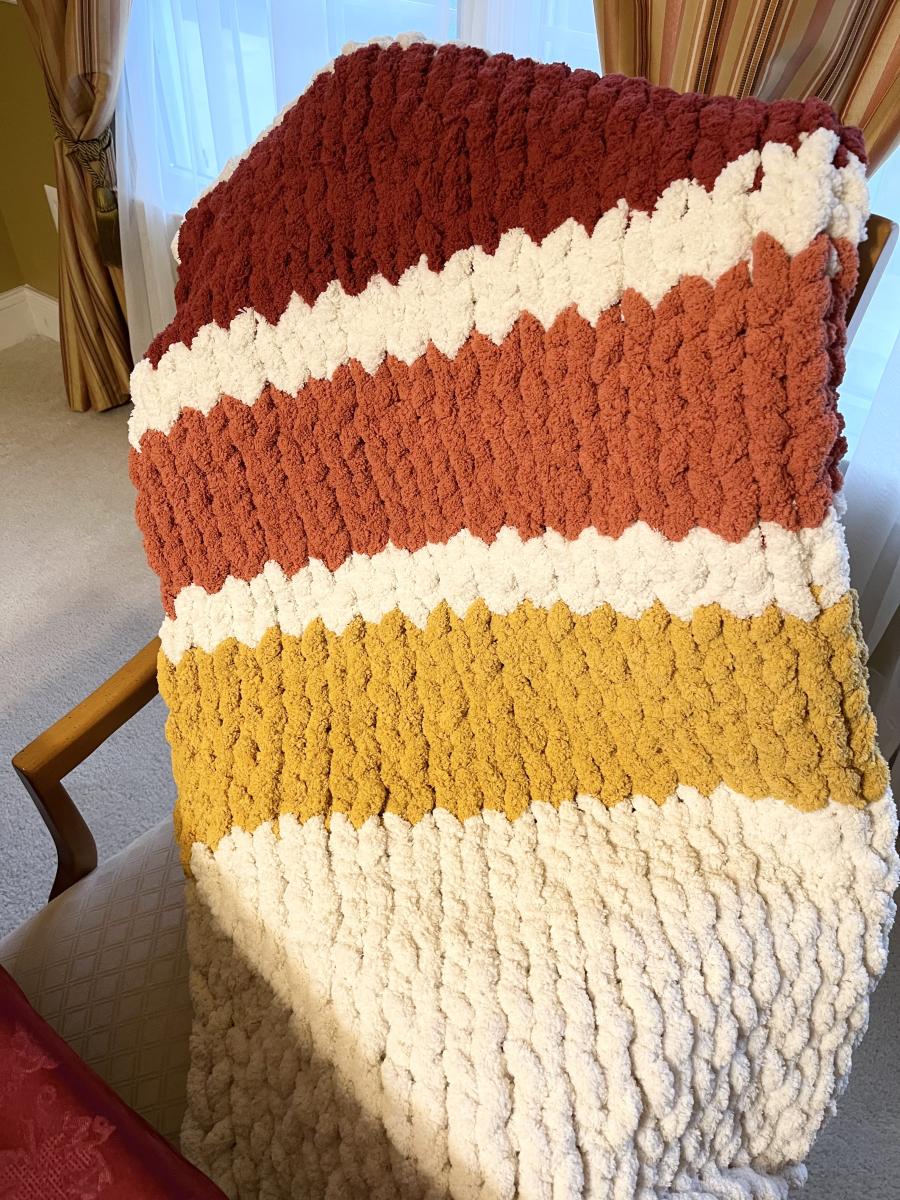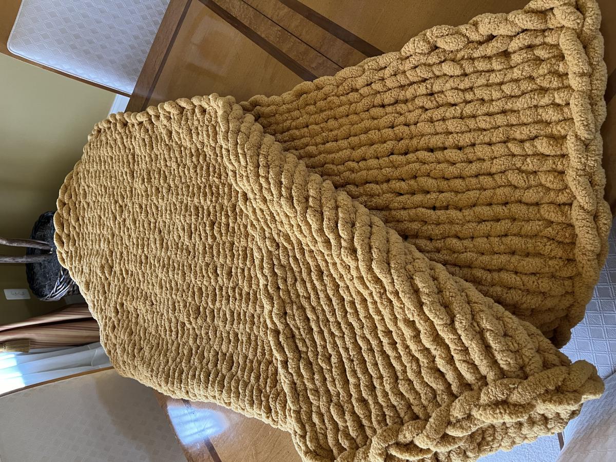 Knitify chunky blankets are hand knitted and come in 3 sizes - small (for babies), medium (throw size) and large (queen bed size). All blankets are made with 100% polyester jumbo yarn and should be washed in cold water and dried flat or on very low heat.
