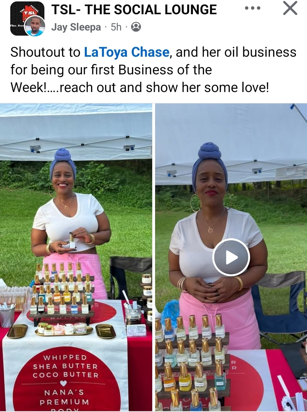 My business is named after my mother who passed away two years ago. My mother use to make her own body butters for her personal use. This year I started Nana's premium body butter and oils in her memory. We sell body butters and perfume/cologne body oils.