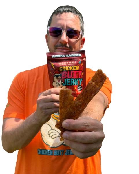 Chicken Butt Jerky is a new kind of protein: tender-chewy, ground-and-formed chicken strips crafted for real flavor and clean fuel. We hand-mix bold Mediterranean “flavor bombs” (think warm Shawarma, smoky-bright Harissa, and seasonal specials), then slow-dry in tightly controlled small batches for a uniquely soft, satisfying bite—never tough or sugary. Minimal ingredients, maximal taste, artisan made. It’s the portable, high-quality protein you’ll actually look forward to eating.