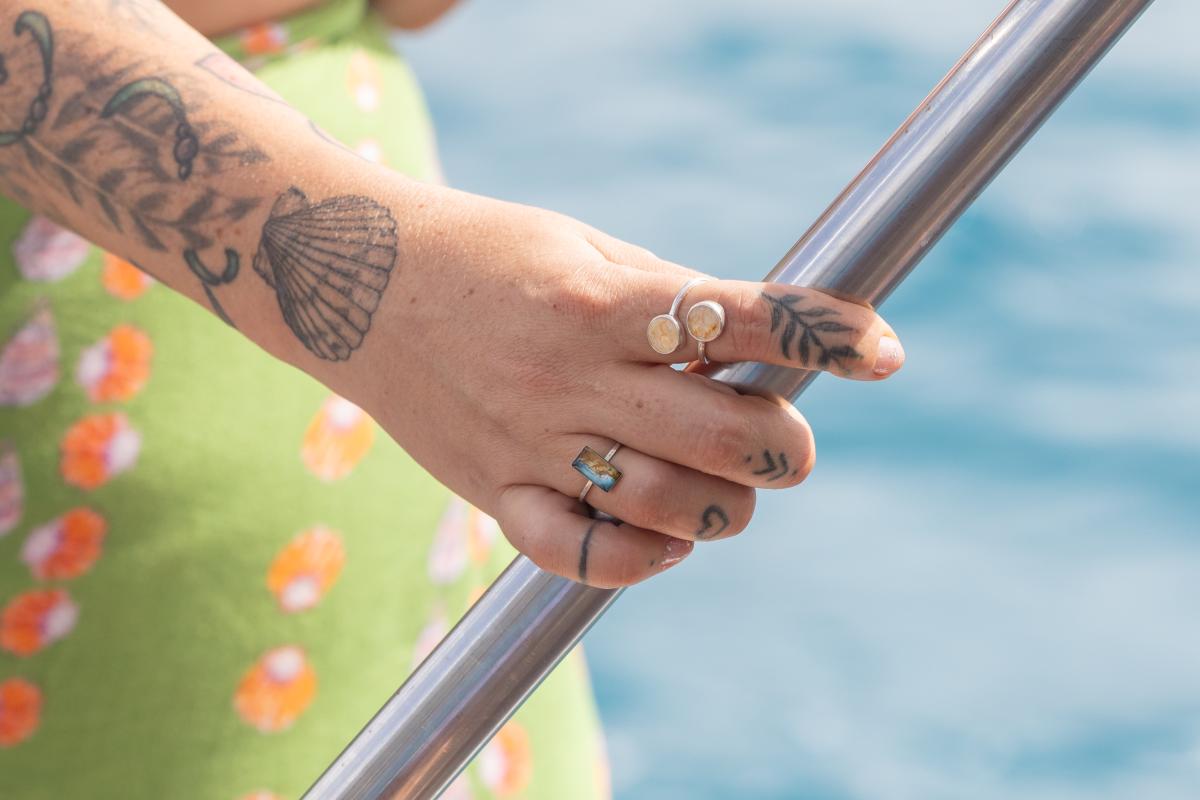 Each unique piece of sustainable jewelry comes on a card stock with the species of fish and responsible contributing fisherfolk listed.