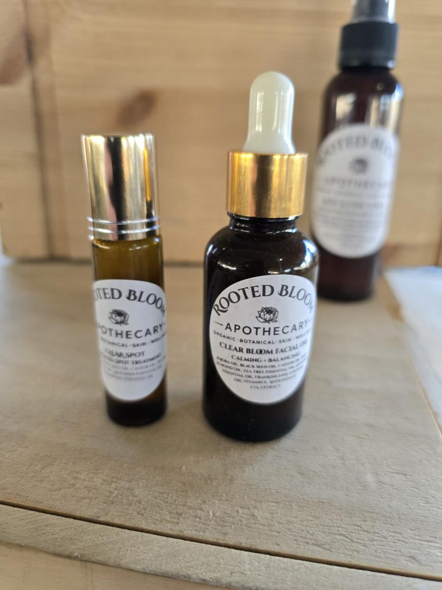 Rooted Bloom Apothecary offers small-batch, handcrafted herbal wellness products made with thoughtfully sourced, high-quality ingredients, including many organic botanicals. Our product line focuses on natural immune support, everyday wellness, skin care, and home aromatics, all created in small batches for quality and consistency.
