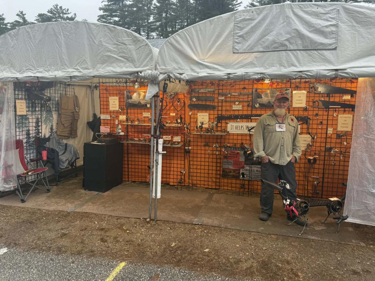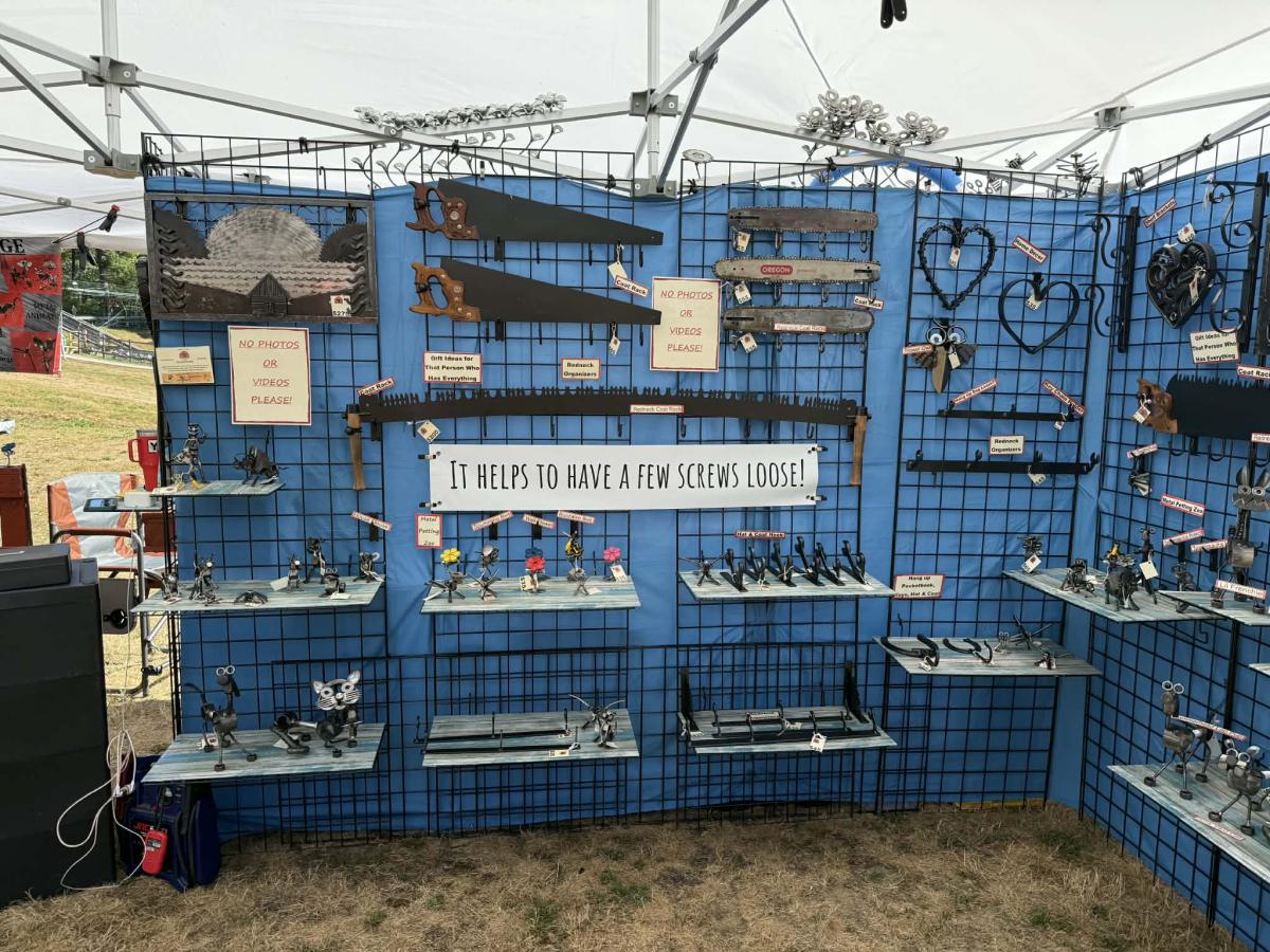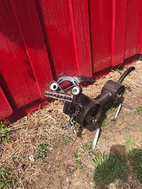 We here at Liberty Farm & Forge take remnants: parts and pieces of farm implements, tools, saw blades, or any old metal, and transform it into usable items for your Home, Camp, or Garden. Our favorite is our Metal Petting Zoo! It's ever changing and very unique and Whimsical!