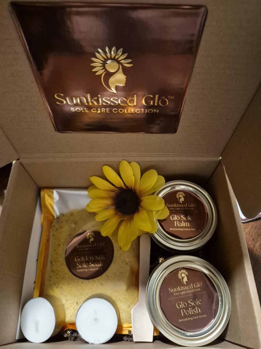 Rooted in nature and purpose, Sunkissed Glō was created to solve a common problem, neglected feet, by offering a mindful, luxurious solution that feels good, works effectively, and honors the connection between self-care and well-being.