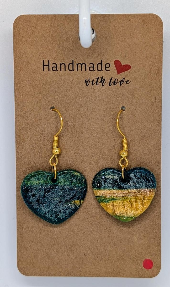 Dive into the serene beauty of my Seaswept Earrings Series. I was inspired by the colors of the ocean. Each pair blends blues, turquoise, and shimmering gold accents. Choose from sweet hearts kissed by the sea, adorable pet paws leaving seaside trails, whimsical "dizzy owls" caught in a coastal breeze, or delicate clamshells whispering ocean secrets. Find the perfect piece of the shore for your ears!Earring hardware made of Niobium, purchased from hackberrycreek right here on Etsy!This item is handmade, so there may be slight imperfections and variations in its characteristics, which add to its unique charm.