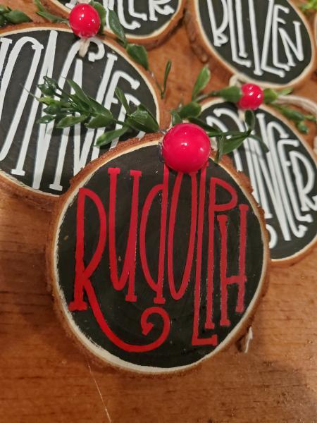 2.5" Santa's Reindeer Wood Slice Ornament; Rustic Christmas Tree Ornament- Wood Slice Ornament
