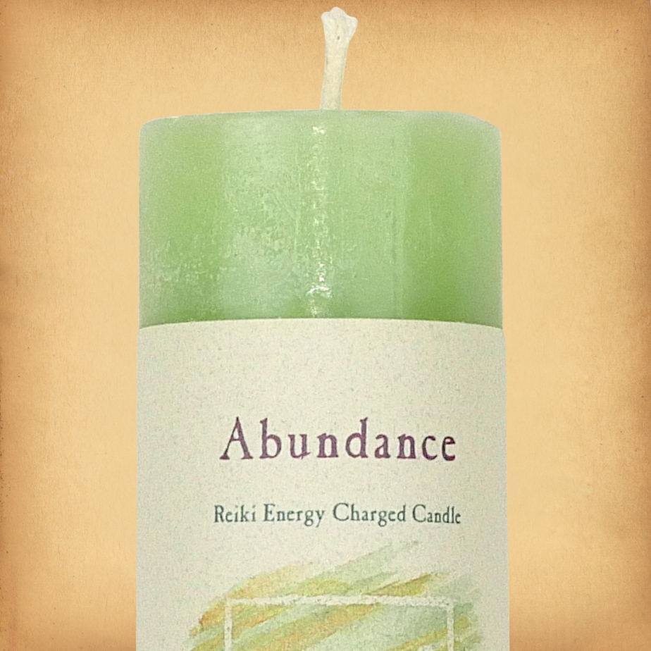 • Made of the finest Vegan waxes • 7" tall by 1 1/2" in diameter • Metal-free wicks • Handcrafted in New England The spring green Abundance Pillar Candle is scented with a fragrant blend of citronella, clove, lemon balm, nutmeg and cinnamon. The affirmation reads: "May an abundance of goodness flow freely into my life. Allow me to be receptive to the treasures that present themselves, enriching my life's journey." Use the Abundance Candle to attract prosperity, increase success, and obtain material possessions. You can also use it in combination with the Problem Solving Candle when starting a new business. When you are ready to use your candle, before you light it, take a moment to simply hold it in your hands and focus on your objective. In addition to the general intention, think about your situation in particular, and the change that you would like to create. Some people choose to anoint their candles with oil at this time, or carve symbols into the wax. That's entirely up to you. Trim the wick to 1/4", and remove the paper wrapper before you light your candle. Never leave a burning candle unattended. Why should I trim my candle wick? The length of a candle's wick determines how much fuel (the melted wax) is feeding the flame. If the wick is left too long, the candle burns more quickly than it should. It also produces more soot as it burns, which can leave a residue on the walls and ceiling. If the wick is too short, the candle will not stay lit. The ideal length is between 1/8-1/4". Do I have to use this candle in a formal ritual for it to work? Not at all. Candle magic is wonderfully versatile. You can incorporate it into formal spell casting, of course. But you can also combine it with meditation, chakra rebalancing, relaxing to music, or simply sitting in your sacred space. How long will my candle burn? Various factors such as air movement & wick length will affect the overall burn time of any candle. The estimated burn time for these pillar candles is approximately 30 hours