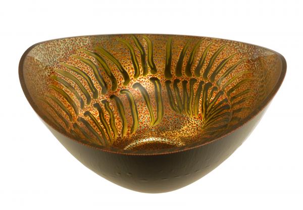 Green and Gold Bouquet Glass Bowl