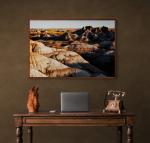 The best times to visit the Badlands is just before sunset. From a good viewpoint you can truly get a sense of the vastness of this area, and the rock striations it is formed on. Presented on archival canvas, surrounded by a black hardwood float frame. Please contact Steve regarding alternate sizes and finishes.