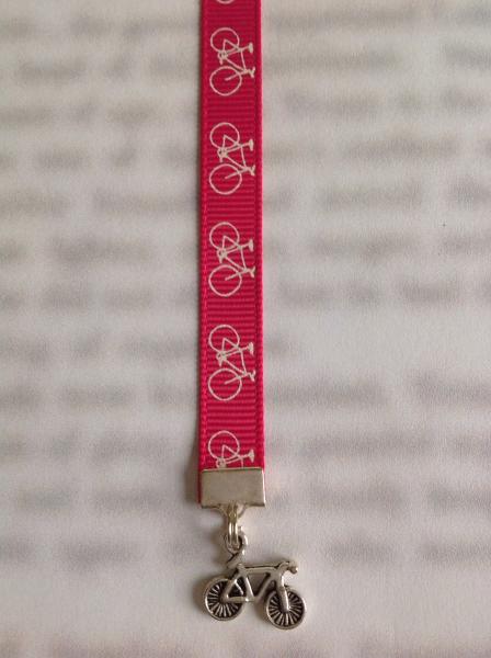 Bicycle bookmark by Charming Book Clips. My super fun and functional patented ribbon with charm bookmarks feature a special silver clip that attaches to your book cover so you never lose your bookmark. Just slide the clip onto the cover of a paperback or the binding of a hardcover when you start your book, then mark the page with the ribbon. ***Join my email list for VIP discounts at this link ***