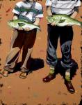 A contemporary view of two boys showing off their catch. This original acrylic painting would lend itself to a modern or farm house. Strong imagery and shadows make this painting one of my favorites.