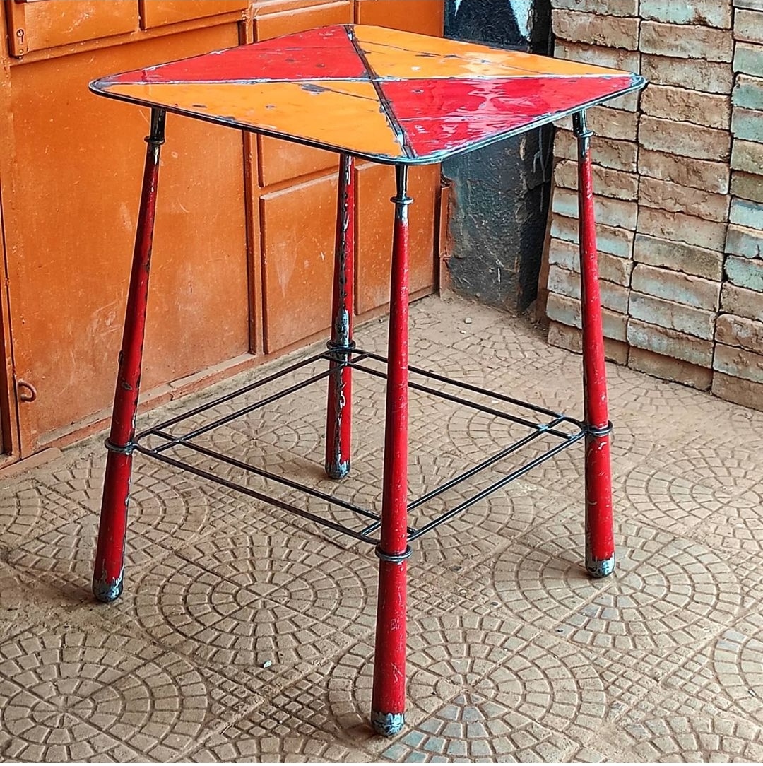 Each furniture piece is handmade from repurposed metal, transforming industrial materials into functional works of art.