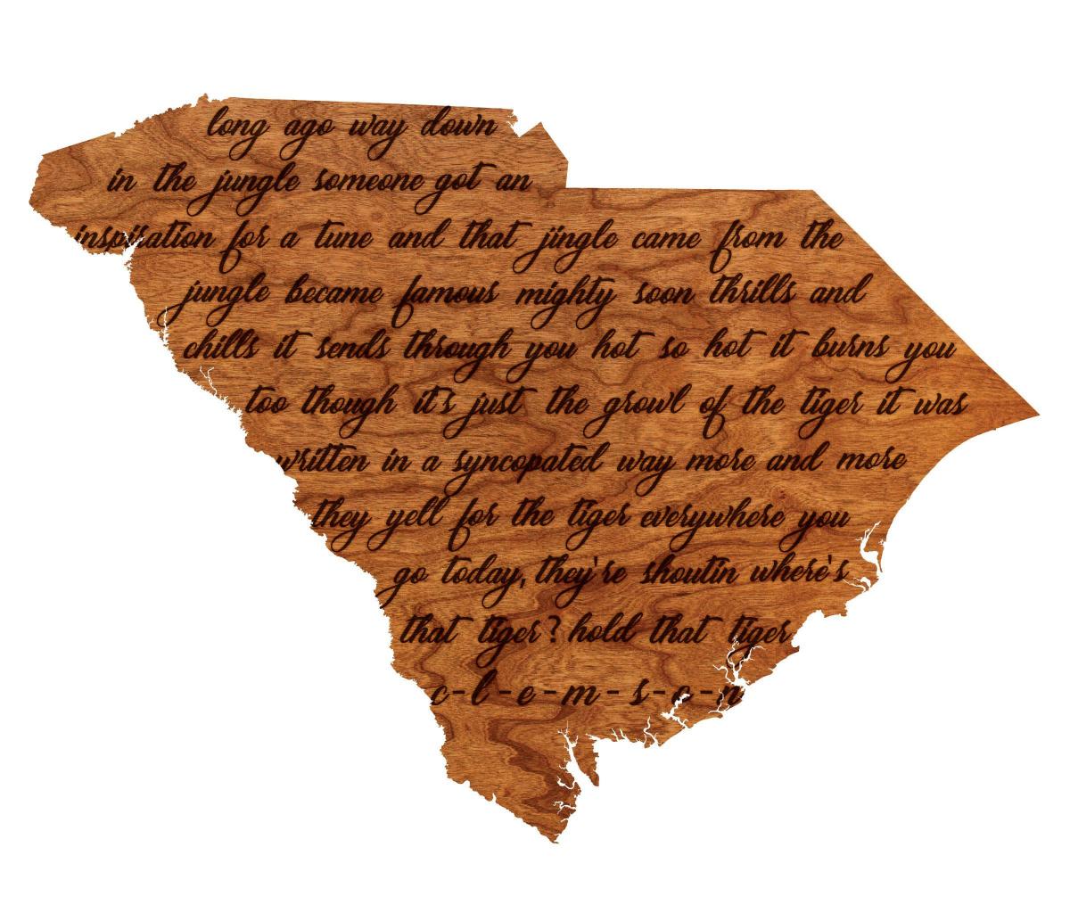 Clemson University - Wall Hanging - State Map - Fight Song - Eventeny