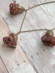 Colors of Frida - One of a Kind Statement Necklace - 3 Flower Pendants - Multi Media - Fiber Metal Glass - Multi Color- Reds Coral Blue Colors of Frida - One of a Kind Statement Necklace - 3 Flower Pendants - Multi Media - Fiber Metal Glass - Multi Color- Reds Coral Blue
