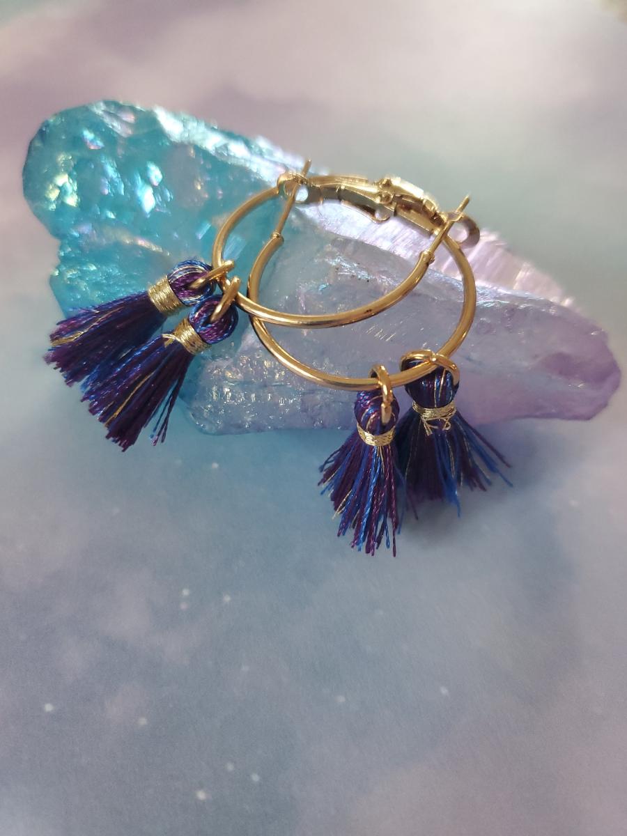 Like the tail of a comet, these earrings bring enchantment and whimsy to life! A lovely blue tassel dangles from a golden hoop for that little bit of sparkle - these earrings are sure to bring a little bit of magic to your wardrobe!