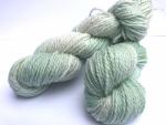 This yarn is so next to skin soft, and comes from our handsome whether named martin. Martin is a friendly guy, and he is the whitest sheep on our farm! We've dyed this a pale aqua we call "Winter Ice" with a few hints of spring green peaking through the snow. Each 2-ply skein is 200 yards, app. 5 ounces.