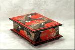 Cranes on Red Washi Covered Box, 9.75" x 6.75" (brim to brim); 3.5" tall