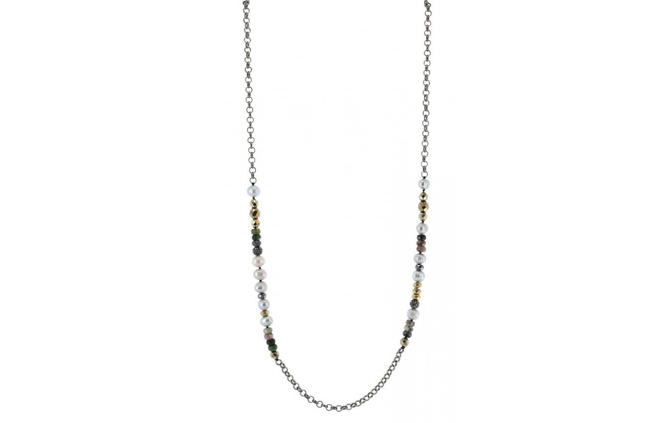 DANI DESIGNS 36'' HEMATITE COLORED CHAIN W/FRESHWATER PEARLS, MULTI STONE BEAD NECKLACE