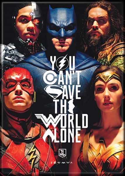 Please confirm your choice below and add DC Comics Justice League Movie Group Can't Save World Alone Refrigerator Magnet to the cart.