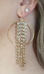 Round metal earrings with dangling rhinestones tassels. Approx: 4" Material: Zinc, Gold and rhodium plated, rhinestones Lead Compliant, Nickel Free