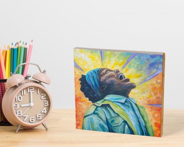 5"x 5"x.75" Giclee Print on wooden plaque from Original Art work by Sylvia Aldebol.