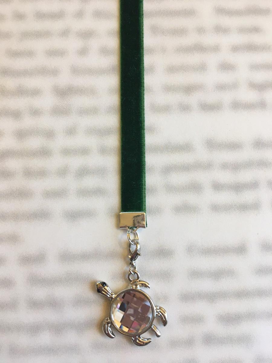 Exquisite Swarovski Turtle bookmark with faceted crystal, Sea Turtle bookmark- Attach clip to book cover then mark page with ribbon & charm Exquisite Swarovski Turtle bookmark with faceted crystal, Sea Turtle bookmark- Attach clip to book cover then mark page with ribbon & charm
