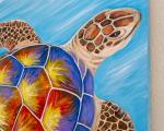 Inspired by the majesty of the turtle, I used its symmetrical elegance to fill it with warm colors which resemble fire. It looks at you and guides you only to the future, to new sights towards a long life of success.