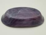 An oblong piece of purple glass was placed on top of a clear glass base. The layered glass was then fired in a kiln for over 10 hours to fuse the layers together into 1 flat piece of glass. It was fired again over an oblong bowl mold to shape. The glass is food safe and can be displayed as art glass or used as a serving piece. It is truly a one of a kind creation.