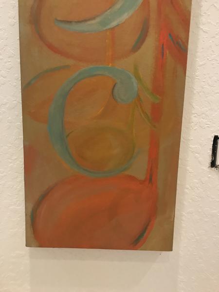 Inspired by the love of music, this "Fusion" painting is rich in gold and orange hues. Bright musical notes and a clef splash over the canvas. This is an original painting and is an acrylic on canvas. Great wall decor for the musical enthusiast no matter what genre they prefer. So for your Justin Timberlake fan friend, or Luke Bryan lover, or for the friend that loves Mozart, this is a wonderful gift. Envision the painting on the living room wall in an art district apartment in Manhattan or on the dining room wall of a ranch just outside of Nashville.