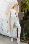 Fuzzy alpaca cardigan sweater with oversized hood.