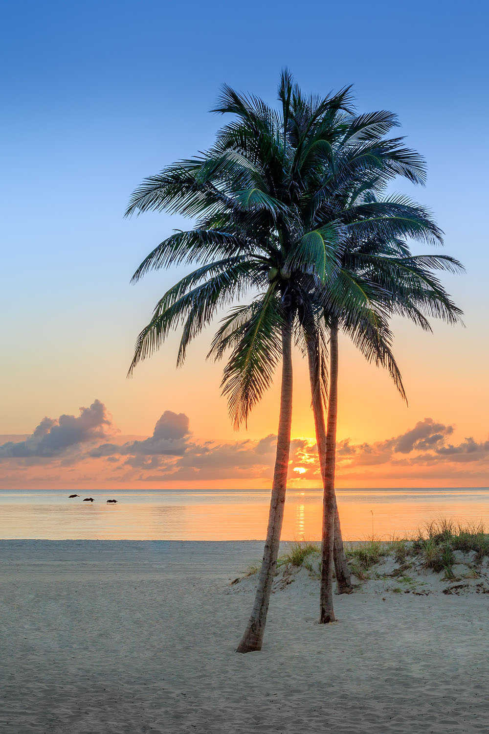 Acrylic Glass Mounted Fine Art Photograph - Sunrise through the palm trees at a beautiful Florida beach.