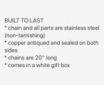 This adorable 1” copper Georgia necklace will make the perfect gift for your favorite Georgia girl! It features a single freshwater pearl and the copper has been patinaed and then sealed on both sides with a matte sealer for an antique look. The stainless steel chain is 20" long and has a stainless steel lobster claw clasp. Send one to all your Georgia girls!