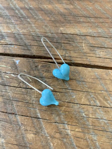 Sterling silver ear wire earrings with red glass hearts.