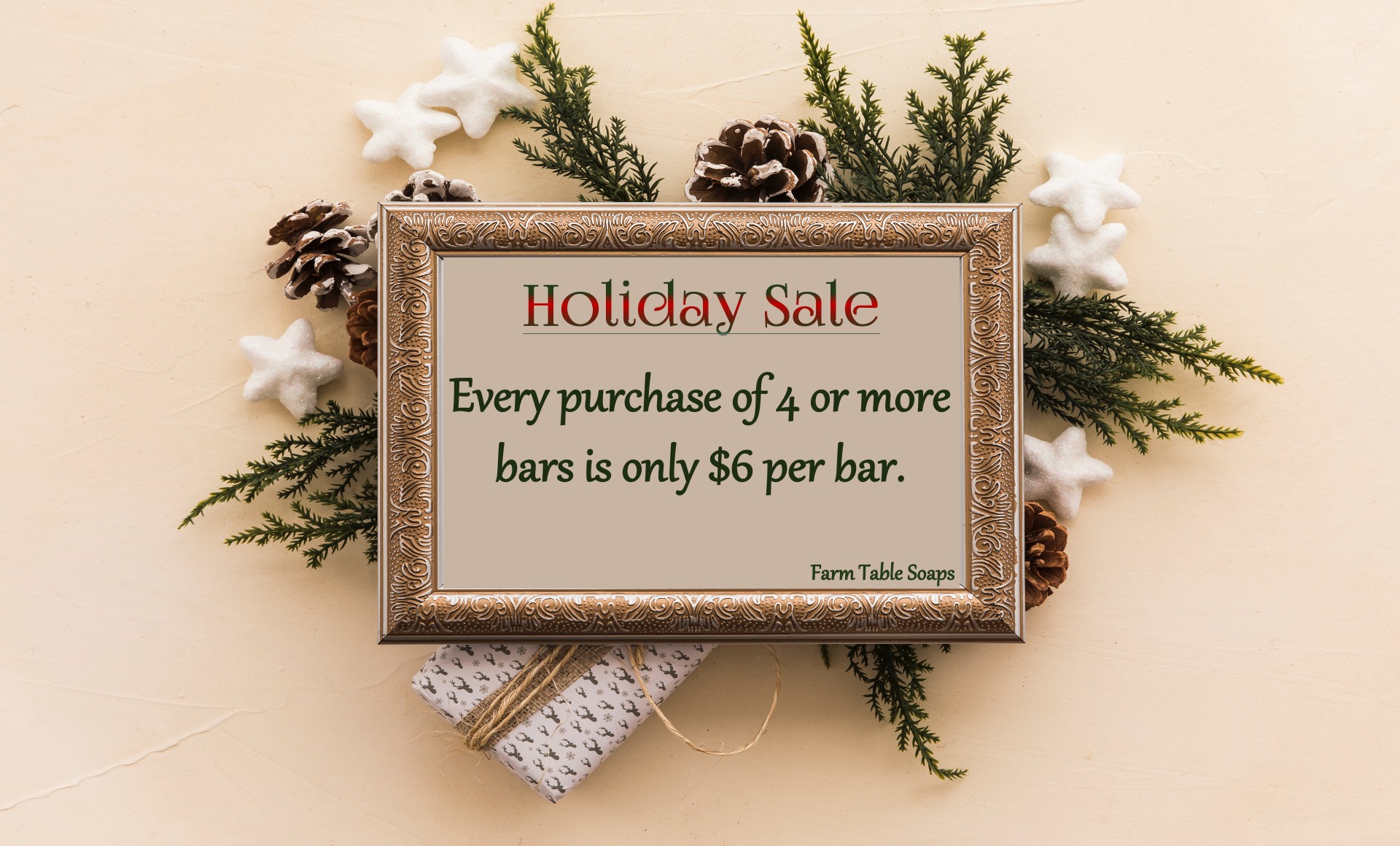 Soaps are $6.50 per bar or mix and match 4 for $24. Purchases over 4 bars are only $6 each.