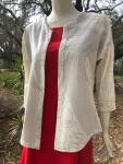 Reversible hourglass semi-fitted jacket has black stitching and handmade binding on one side, and red with black stitching on reverse.