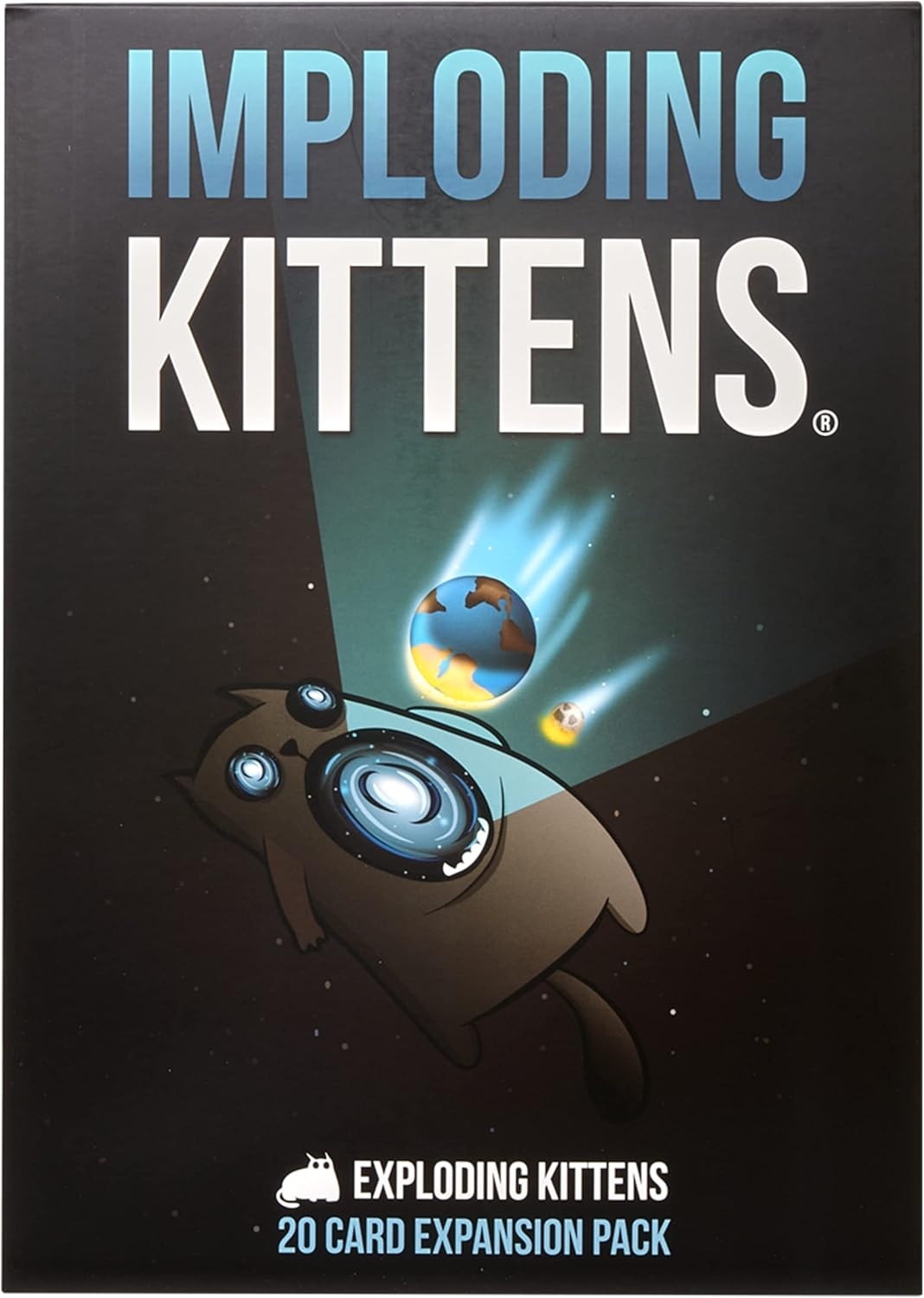 Imploding Kittens is the first Expansion of Exploding Kittens, the award-winning card game that made Kickstarter history as the most-backed project, ever. This Expansion deck includes 20 new cards featuring 6 new types of actions and an Imploding Kitten which increases the game from 5 to 6 players.