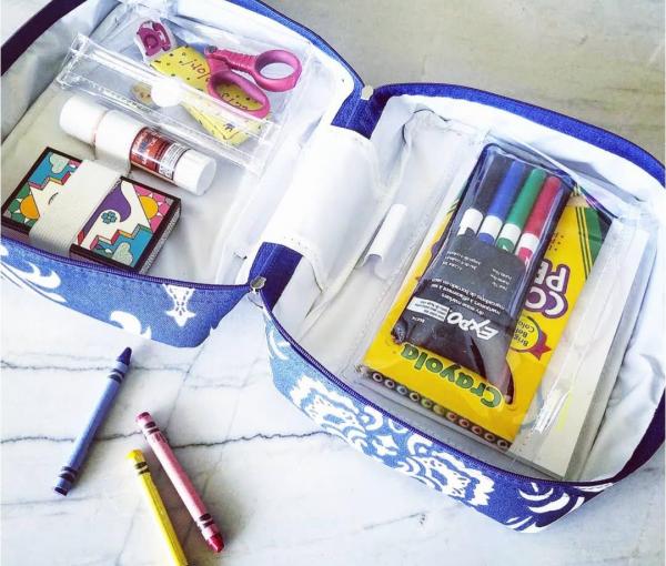 The Just In Case™ is uniquely designed to store and tote medication, toiletries, first aid, or even crafts - all in one place! Great for travel or at-home storage. Guaranteed to keep your medicine cabinet neat, tidy, and accessible. Boasts four elastic bands to keep things in place, a large plastic pouch for easy in and out, a handy outside pocket accessible when bag is closed, and a Velcro removable pouch. There's a place for everything in your medicine cabinet. It’s your ALL IN ONE SOLUTION! Made of durable outdoor wipeable material. Lined and padded to prevent leaks. Zipper closure. Adjustable Velcro strap. Just In Case™ stands upright or lays flat, to make medicine removal easy and simple. Made in the USA. 5% of every Just In Case sold goes to lupus charity.