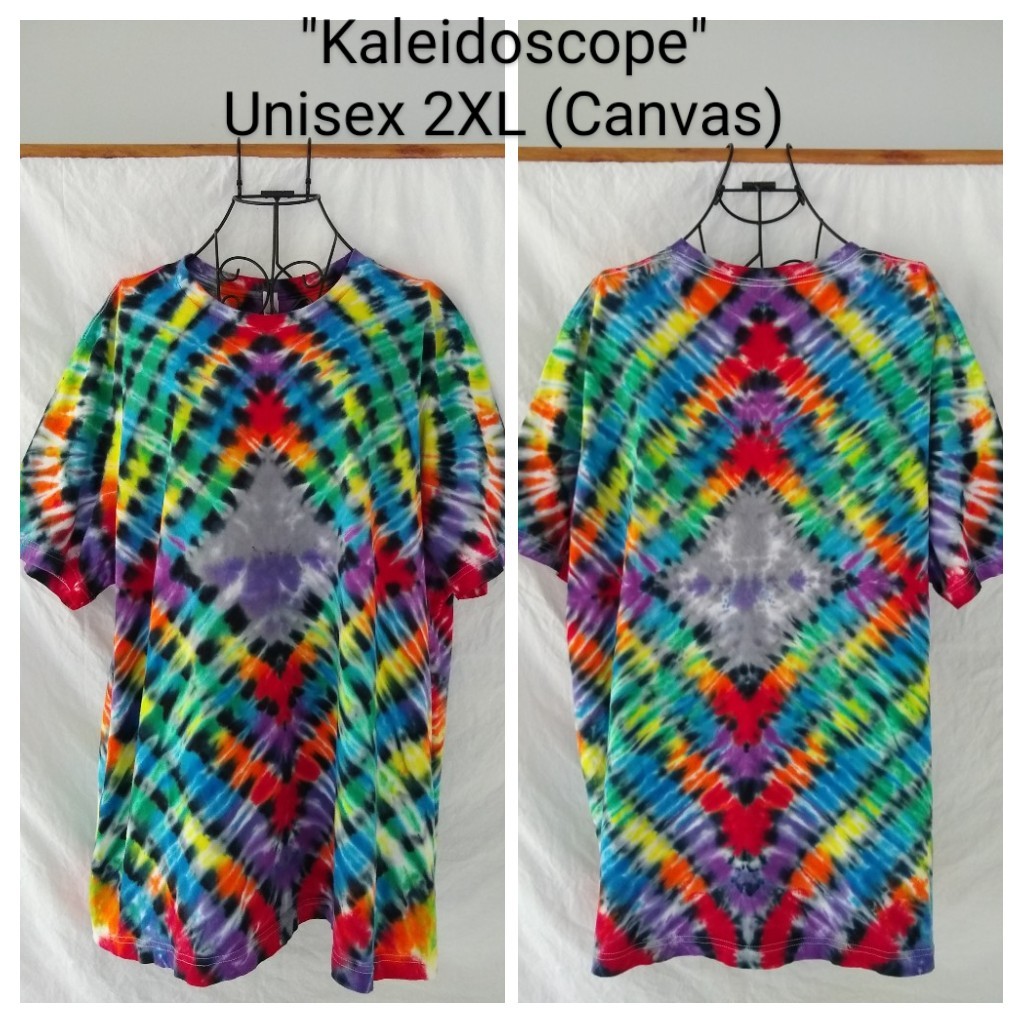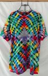 Rainbow tones in a complex diamond pattern make this tee a standout. Handcrafted by Jen. Unisex fit; 4.5 oz., 100% combed ringspun cotton fine jersey. Please see below for dimensions.