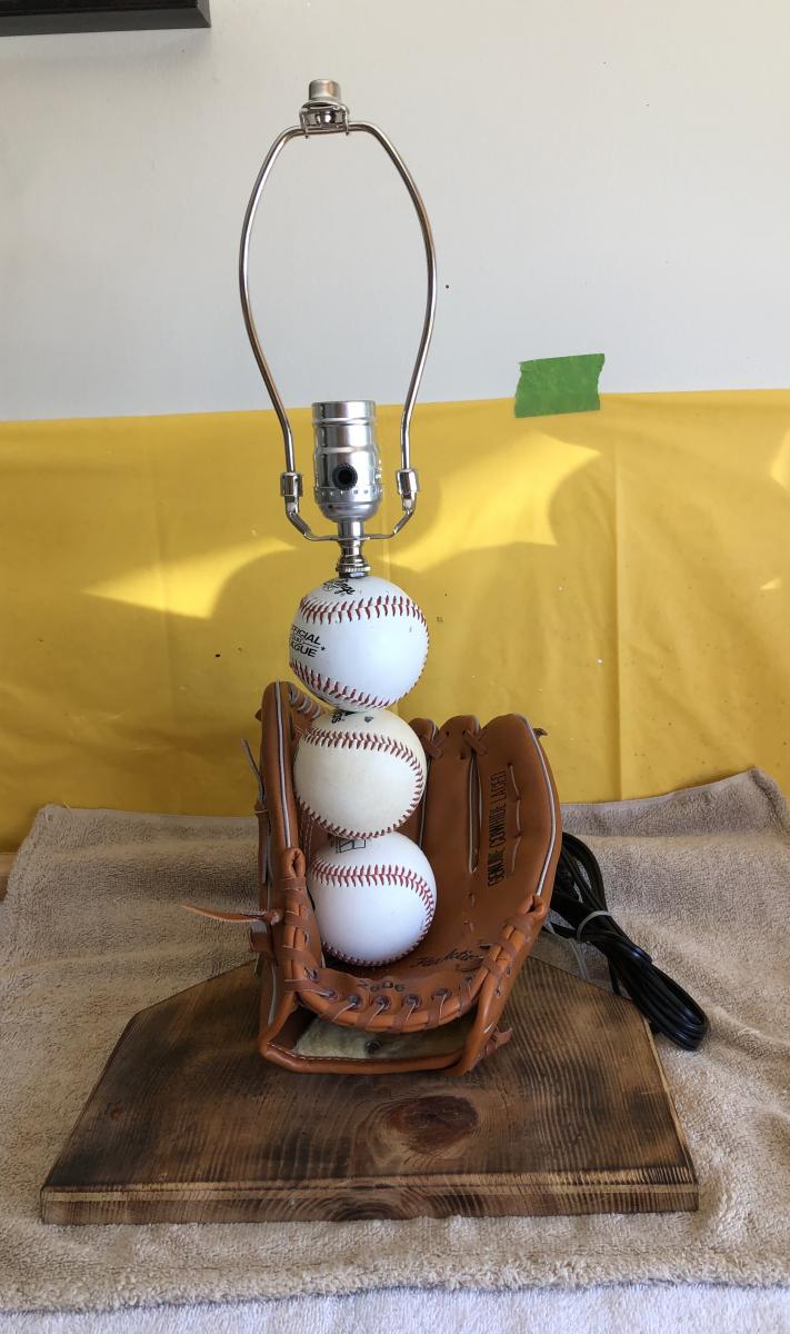 Lamp, w/baseballs and glove