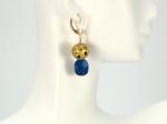 "Lapis Dazzle" Earrings Delightful dangle earrings with lapis lazuli and hand-gilded 23-karat gold on lava. 14-Karat gold-filled lever back earring findings complete the look. Eye-catching and light to wear. They measure 1.75" in total with the 1.25" drop. You Might Also Like: See More Here: https://www.eventeny.com/company/?c=10128