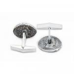 The Order of the Blackened Denarius is a group of fallen angels who are bound to thirty ancient silver coins known as denarii. The best known denarii coin is Lascieli's, carried by Harry Dresden from The Dresden Files. These cufflinks are handcrafted from solid sterling silver and officially licensed to Jim Butcher.