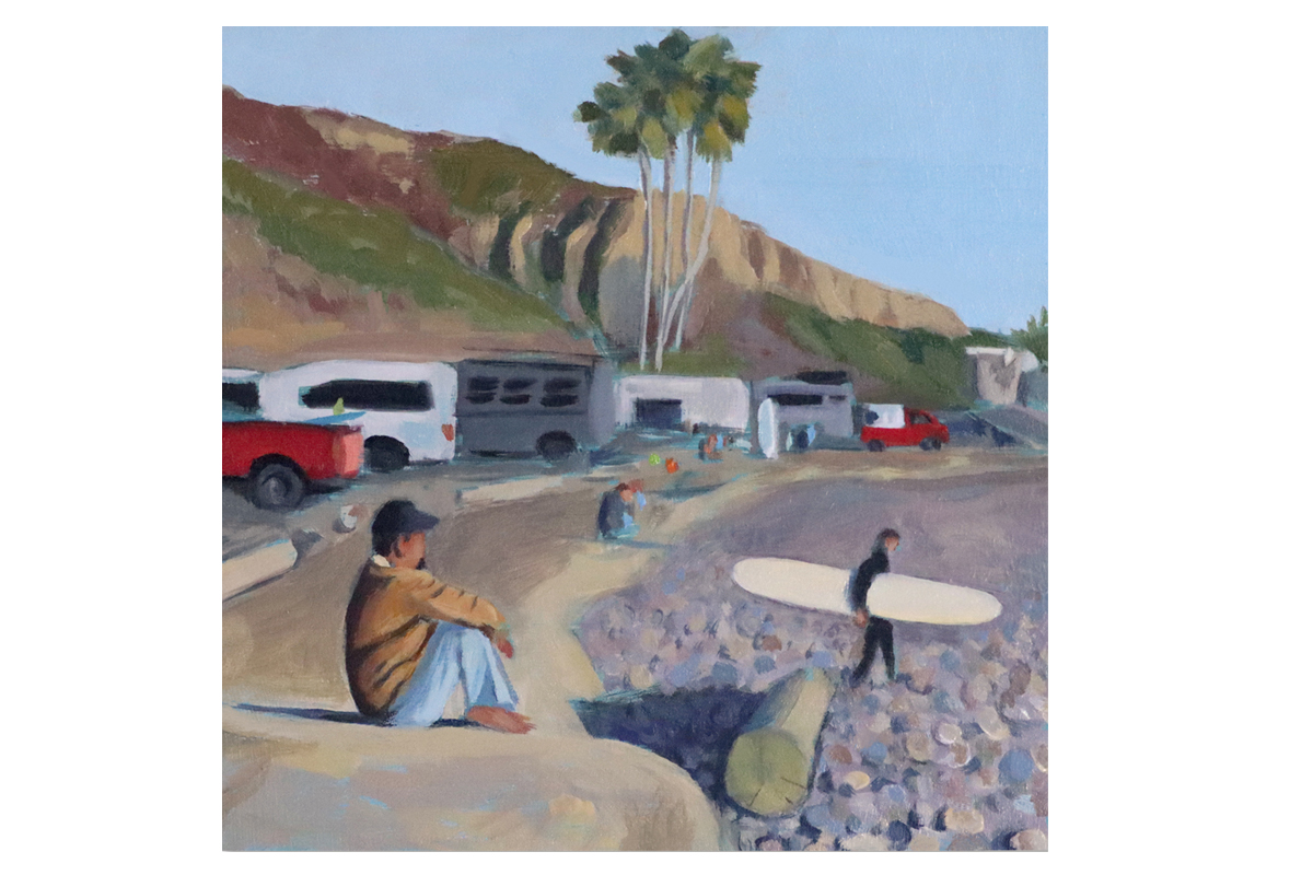 Delivery restrictions may apply: 6" x 6" Oil on wood panel. The end of the day at Sano is a great time to sit in the last rays of sun and watch people head out for the last wave of the day. Signed by me, Susan Croy Roth