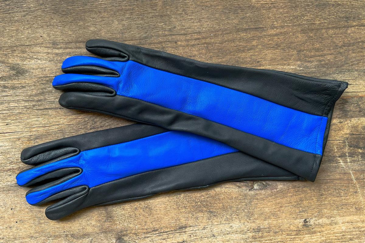 Leather Gloves for Night Wing Cosplay/Long gauntlet/Lamb skin/Black&Blue